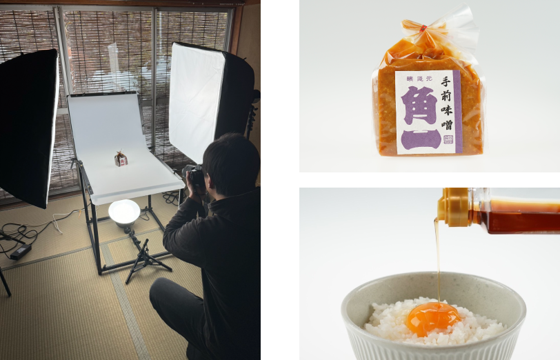 飛騨高山にて130年以上、創業以来の手づくりに拘る伝統製法による味噌・醤油を、オンラインショップ販売するにあたり、自社内でCPLによる商品撮影をしています。