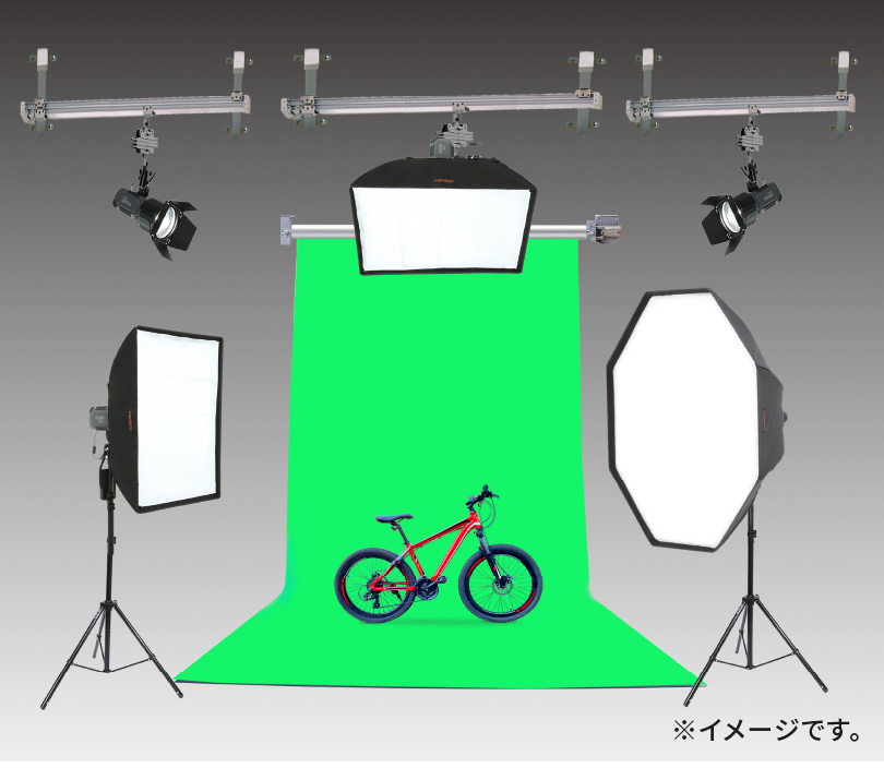 ・プロフェッショナルスタジオプラン ・業種:アパレル/人物/家具/家電 ・撮影対象物:w:2×d:2×h:2(m)程度 電動で可動するトップライトやバックスクリーンを手元で交換できる電動昇降リフト装置を採用したオーダーメイドスタジオ設備プラン。 ・参考価格:300万円~ 設備内容例 LEDバンクライト 3灯 LEDスポットライト 2灯 電動リフト式2本用背景装置 1式 電動トップライトシステム 1式 ペーパーバックスクリーン 2本 -