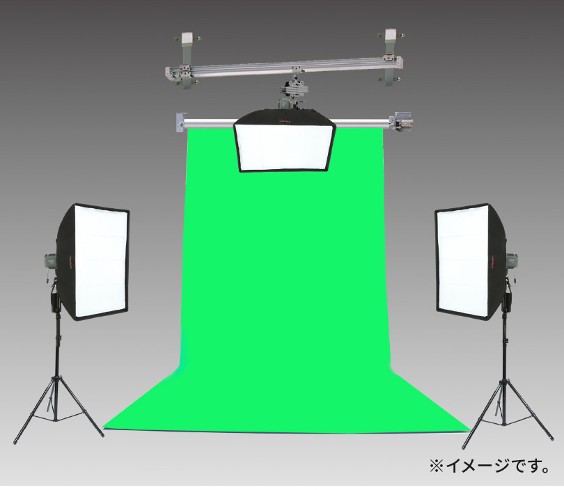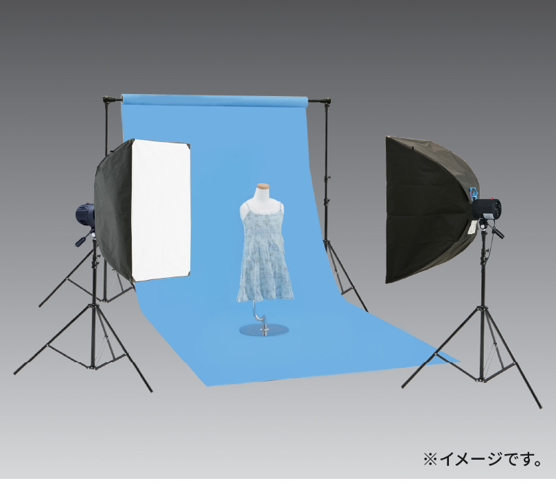 撮影する際に組立設置ができる仮設スタジオプラン。・参考価格:45万円~ 設備内容例 LEDバンクライト 2灯 バックスクリーンスタンドキット 1式 ペーパーバックスクリーン 1本 -