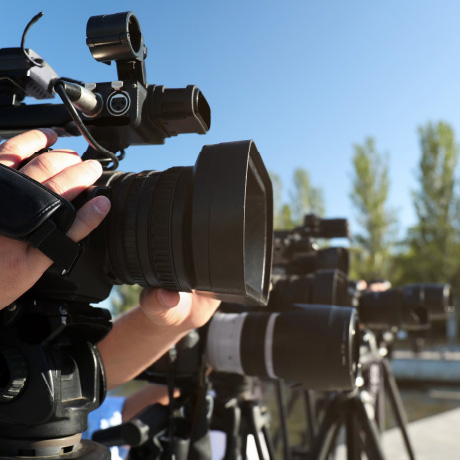 例えばテレビカメラ用同期ストロボが取材の現場で使用されています。