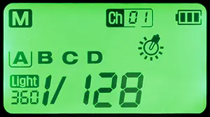 B120/B240ストロボ出力をFULL~1/256、1/3EVステップで調光できます(B360はFULL~1/128、1/3EVステップ)。最大4灯まで各灯に調光及び各灯のON/OFF が可能になります。