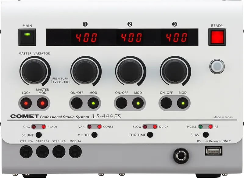 - 各灯ライティングが容易な400Ws×3回路の独立調光。