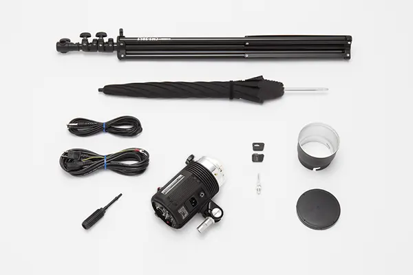 付属品:ACコード4m黒丸J(インレット)、ハロゲンランプ200W、CRシンクロコード5mストレート、RSミニレシーバー