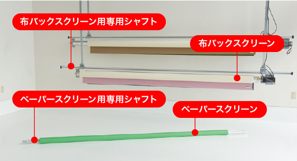 布バック/ペーパースクリーンにあわせた専用のアルミシャフトをご用意しています。